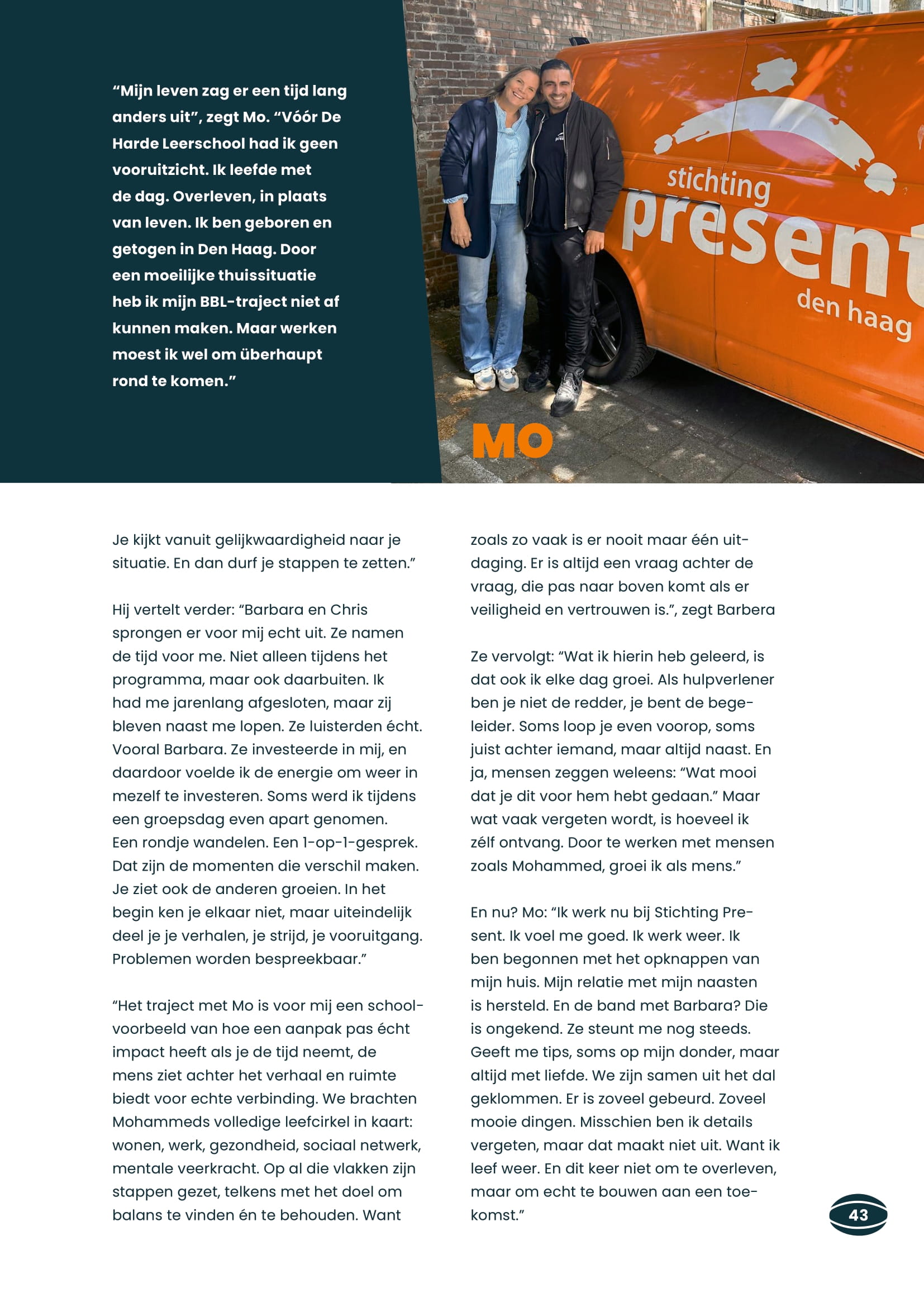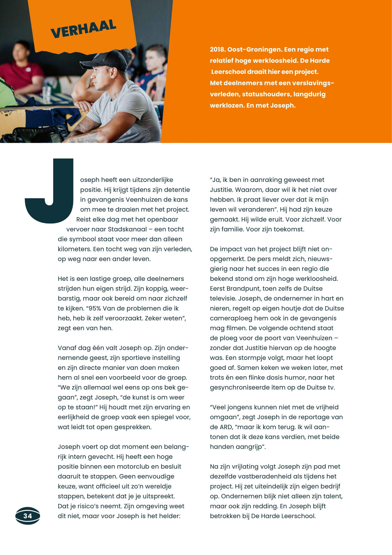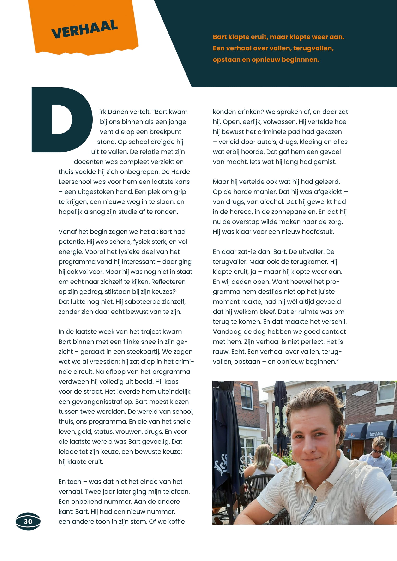 “Elke seconde was voor mij een upgrade. Er bestaat niets zo sterk als een goed team en De Harde Leerschool is echt een wapenmiddel voor een sterke fundering van rehabilitatie en reïntegratie. #legendarisch!”