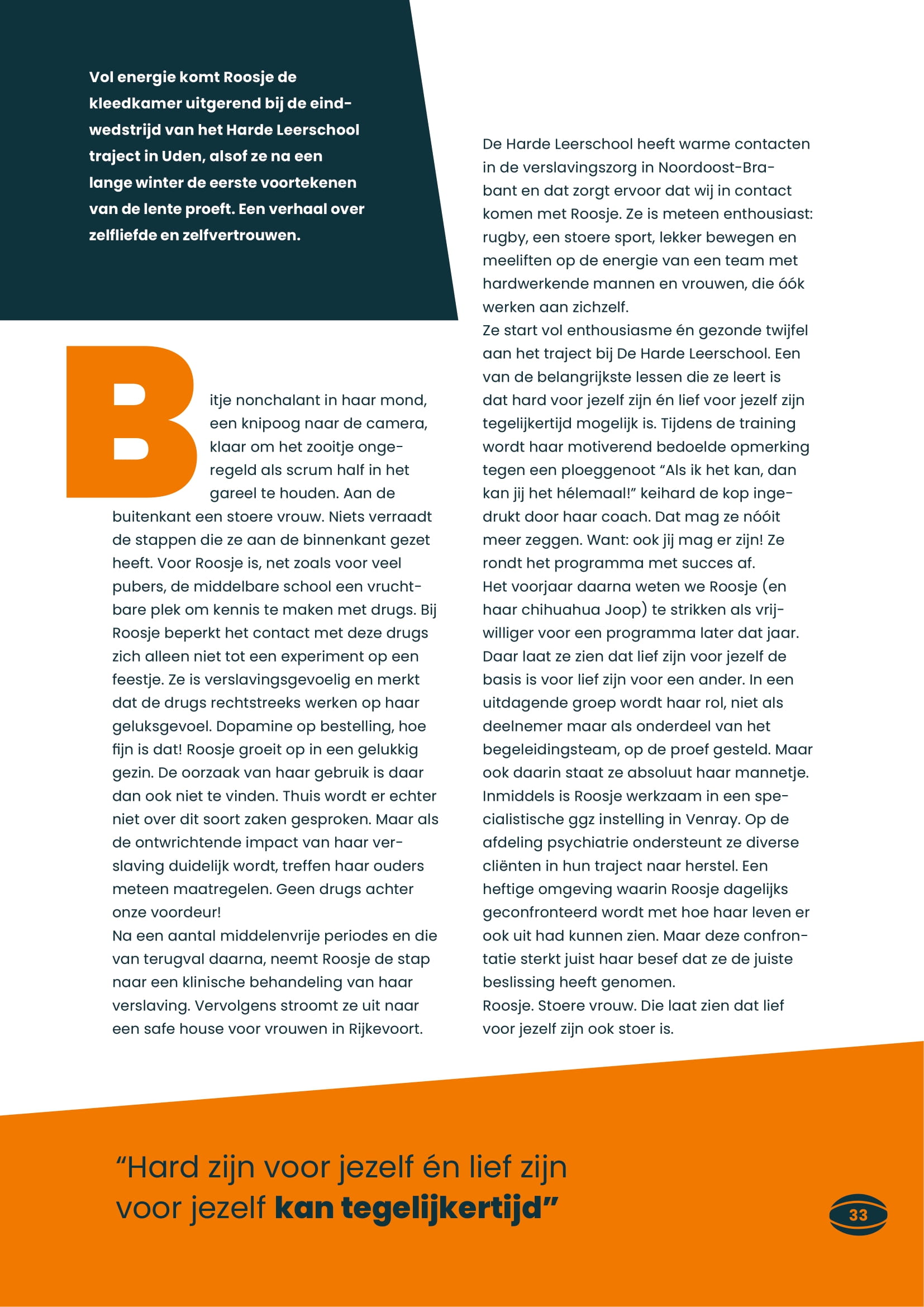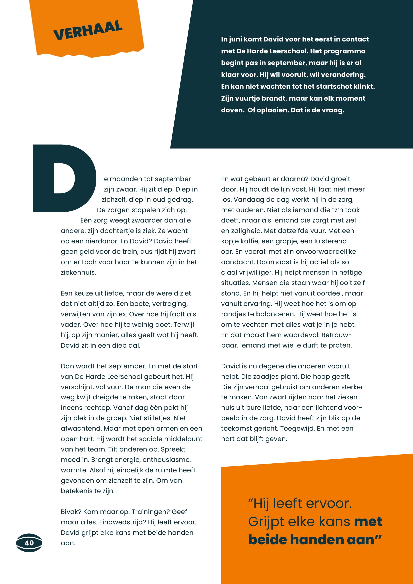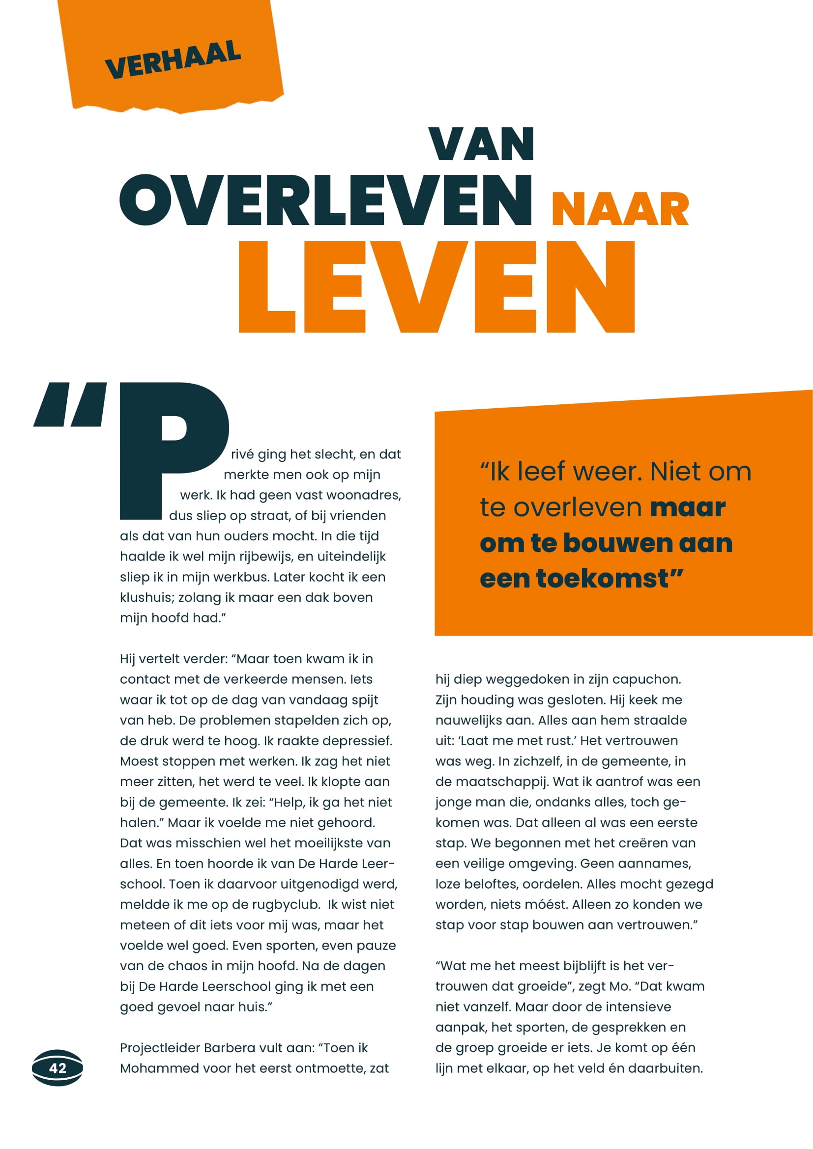 “Elke seconde was voor mij een upgrade. Er bestaat niets zo sterk als een goed team en De Harde Leerschool is echt een wapenmiddel voor een sterke fundering van rehabilitatie en reïntegratie. #legendarisch!”